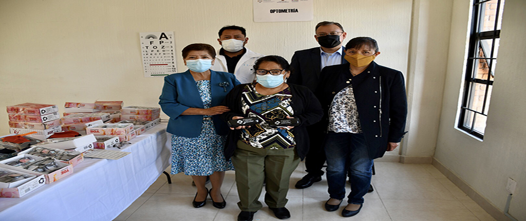 La presidenta Honorífica del Sistema Municipal DIF Chalco, María Garduño, en compañía de la licenciada Leticia Campos Trejo, subdirectora de la Administración de la Beneficencia Pública y el licenciado Alfonso Yáñez Rosado, Subdirector Jurídico de Administración de Finanzas del ISEM, realizaron la entrega regional de 150 Apoyos Ópticos para personas vulnerables del municipio.