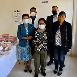 La presidenta Honorífica del Sistema Municipal DIF Chalco, María Garduño, en compañía de la licenciada Leticia Campos Trejo, subdirectora de la Administración de la Beneficencia Pública y el licenciado Alfonso Yáñez Rosado, Subdirector Jurídico de Administración de Finanzas del ISEM, realizaron la entrega regional de 150 Apoyos Ópticos para personas vulnerables del municipio.